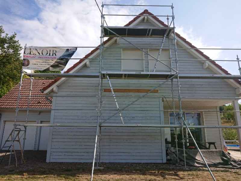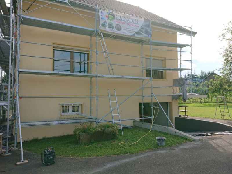 Notre entreprise Lenoir Peinture effectue des travaux de ravalement de façades et la rénovation de peintures extérieures. Nous pouvons faire l'embellissement des encadrements de fenêtres et des angles de murs avec un revêtement imitation pierre. Nos prestations comportent aussi le nettoyage et le démoussage des toitures et mise en peinture. (résine)