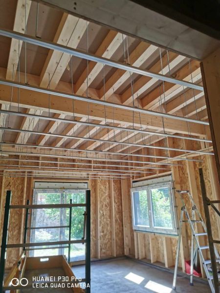 Pose de faux plafonds - Pose de cloisons - Murs en Siporex, plaques de plâtre, béton cellulaire, etc. - Jointoiement sur demande, pose et enduisage des bandes à joint