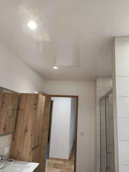 Pour les plafonds, peinture style toile tendue à la finition miroir